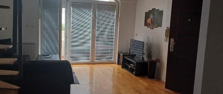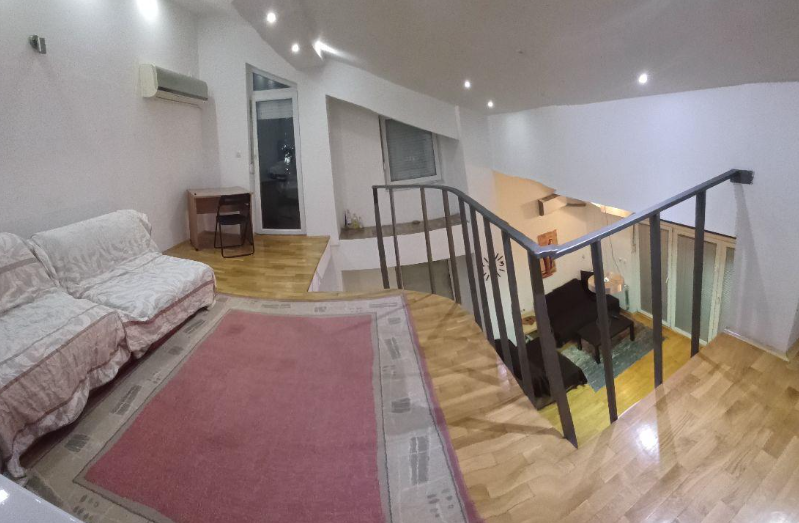 Се издава дуплекс стан во нов објект Пр+2+Потк со П=60 м2.во близина на Државна Болница.Станот има дневна трпезарија,кујна ,2 тераси и со внатрешни скали е поврзан со атеље ,спална соба, купатило и тераса.Греење,ладење на инвертор клими.Погоден за студенти и стажанти од Медицина.Цена 24000,ден со вклучени трошоци без струја.