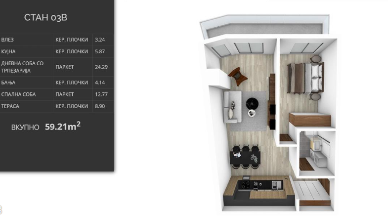Se prodava dvosoben stan 59m2 vo kompleks Aria Lux